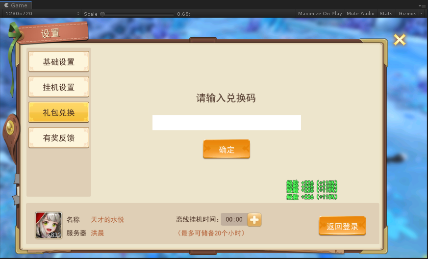 u 玩家在线时可以使用离线挂机卡增加离线挂机时间,最大时间为20小时。