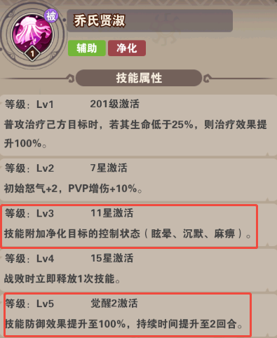 技能:全体治疗,赋予后排减伤护盾,被动敌方全体减怒